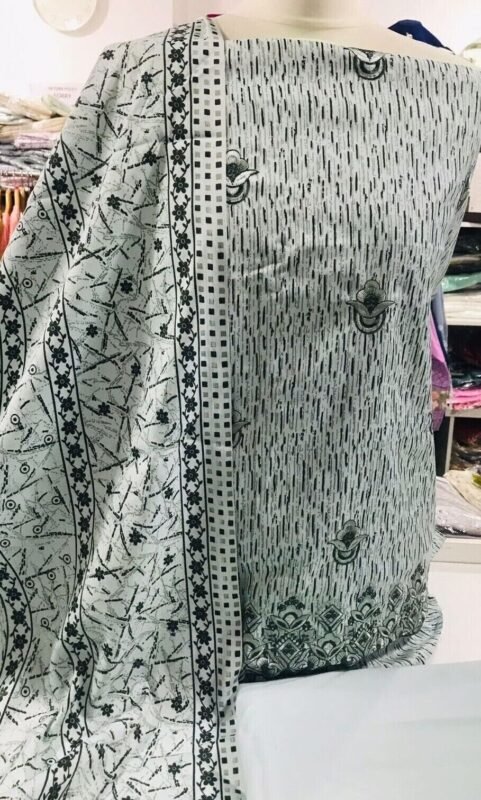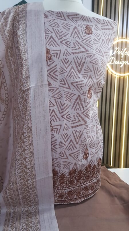 Unstitched soft cotton printed and chiken kari emboridered suits