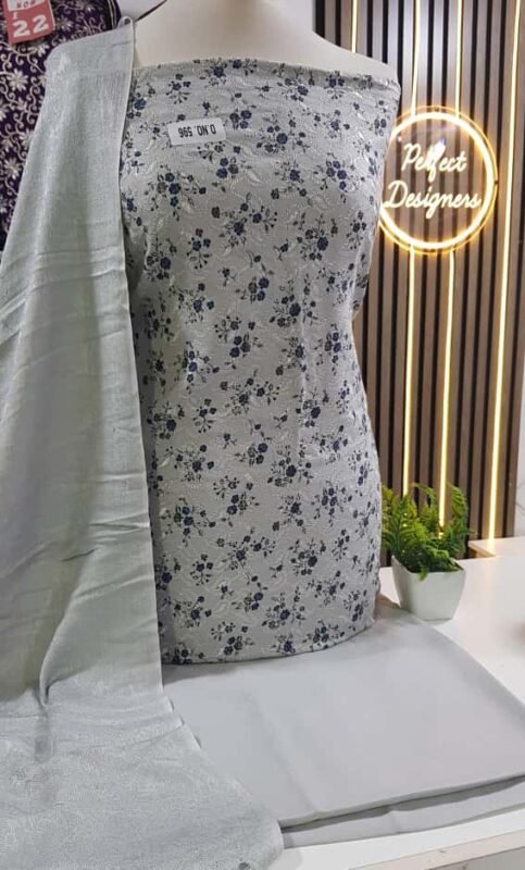 Ladies Unstitched soft cotton printed thread work shalwar kameez 3 piece suits.